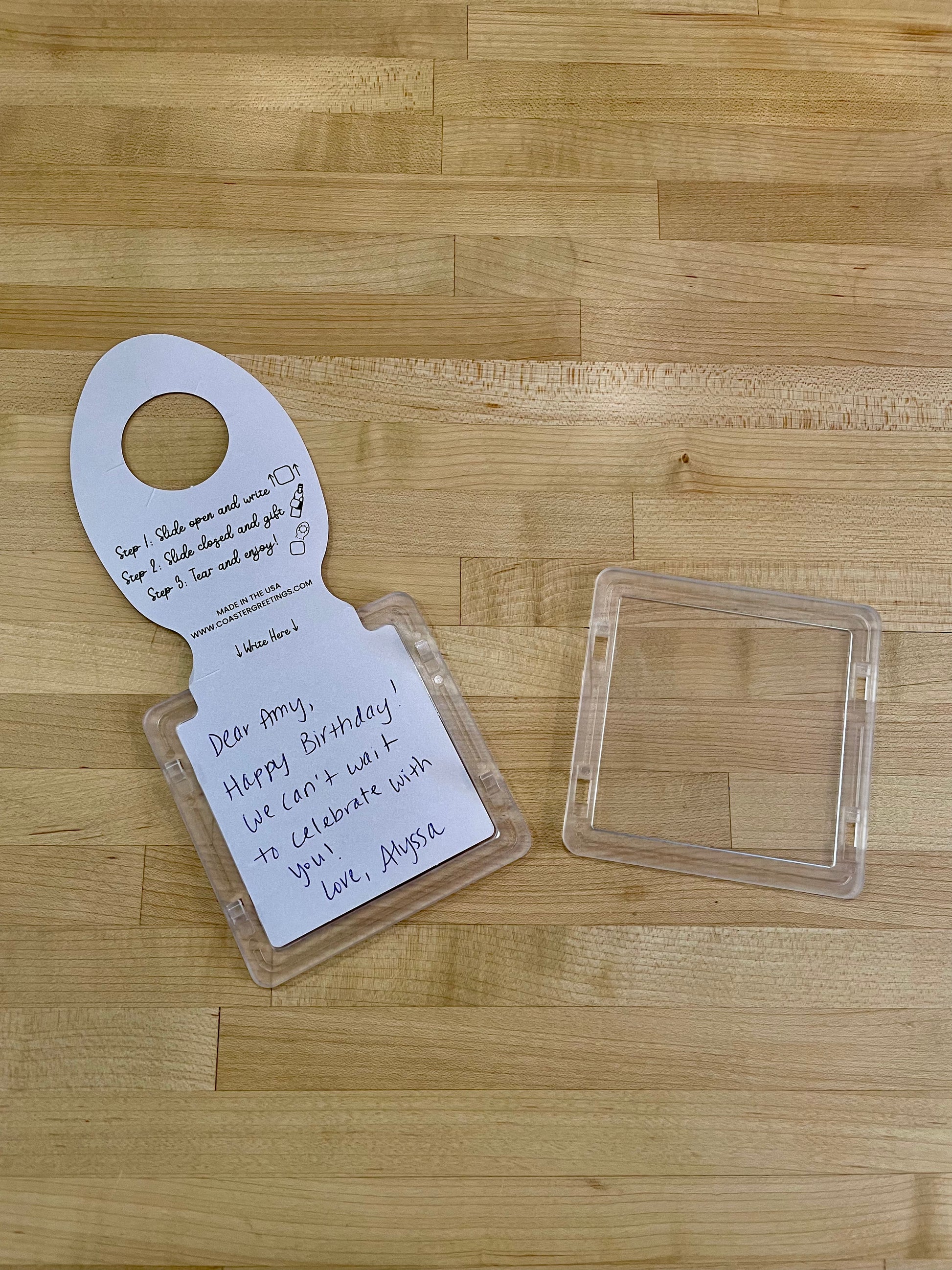 This was such a great and unique way to gift my friends a bottle of wine. The coaster was easy to open and personalize and my friends really appreciated the thoughtful touch! I’ll definitely be buying more.
